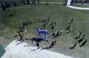È così che comincia la storia di Marco Cavallo, che non sarà venduto e non morirà: porterà in groppa il malato che scrisse per lui quella lettera e molti altri suoi compagni di sfortuna, diventando il simbolo del loro riscatto. Marco Cavallo divenne infatti un’opera in legno e cartapesta dal colore azzurro costruito da Vittorio Basaglia insieme a degenti, artisti, infermieri, medici e tanti amici, ed iniziò a girare il mondo il 25 febbraio 1973, quando Franco Basaglia distrusse con una panchina di ghisa il muro di cinta dell’Ospedale psichiatrico triestino di cui era Direttore – il muro della reclusione – perché Marco Cavallo era così grande che non riusciva ad attraversare l’uscita “normale”. Da allora sono cominciati i suoi viaggi in tutto il mondo, viaggi portatori di spettacoli, poesie, incontri, feste. Con le parole di Peppe Dell’Acqua: “Marco Cavallo è la storia della libertà riconquistata dagli internati. È il testimone di una restituzione: il diritto di cittadinanza a tutti i cittadini, anche se folli. È una grande straordinaria macchina teatrale che la visionarietà di Giuliano Scabia ha reso capace di testimoniare storie intense, singolari e collettive, felici e drammatiche. Testimone di una svolta epocale, il cavallo è l’evidenza della «possibilità» riaffermata contro il destino segnato e ineluttabile della malattia mentale, come di ogni altra condizione umana di oppressione, di fragilità, di limitazione di libertà” (fonte: corriere.it). Marco Cavallo continua a correre senza sosta, ovunque. Viaggia per allontanare la smemoratezza e lo stigma della “pericolosità sociale”, che è sempre attivo e operante; viaggia, non si ferma perché in cuor suo sa perfettamente che, “da vicino, nessuno è normale”. Come sosteneva Franco Basaglia, “La follia è una condizione umana. In noi la follia esiste ed è presente come lo è la ragione” (“Che cos’è la psichiatria?”, ediz. Baldini & Castoldi). Per questo Marco Cavallo vuole continuare a correre e non ha smesso mai di viaggiare.