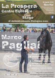 La Prospera Centro Equestre è lieta di annunciare il ritorno di un importante appuntamento, previsto per il prossimo 28 aprile: un’intera giornata di stage con Marco Pagliai di Addestramento Etologico.
