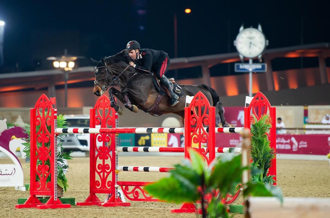Il cavaliere azzurro si è portato in vetta alla classifica della 145 LR nel pomeriggio di gare della seconda giornata del CSI4* di Doha.