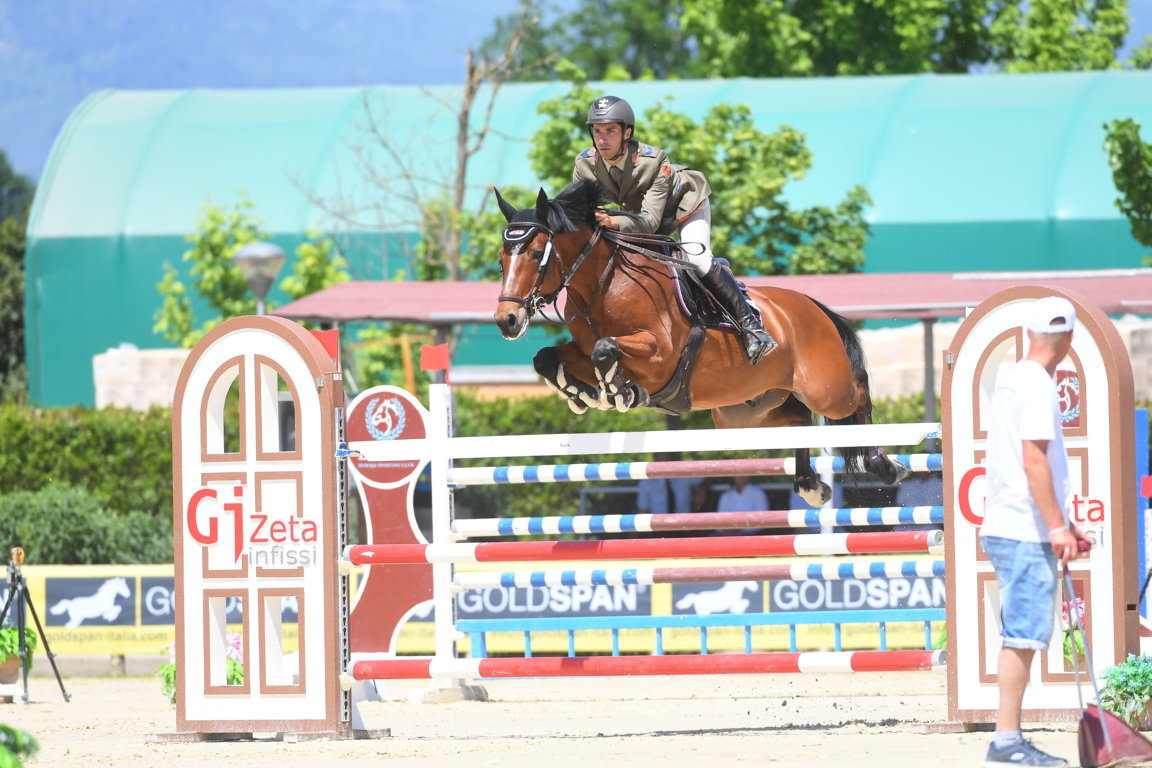 Nella Top10 di questa categoria volta a riscaldare i motori in vista delle prossime impegnative giornate abbiamo poi trovato: 5^ Marta Bottanelli su Donner IK (OS del 2009; Deauville van T&L x Cardero; 0/0-27”:43); il Carabiniere Scelto Filippo Marco Bologni su Braiam (italiano del 2010; Eta Beta x Beach Boy; 0/0-27”:54); 8° il Caporal Maggiore dell’Esercito Italiano Alberto Zorzi – da pochi mesi con base in Italia – con Ludvig (Holsteiner del 2014; Lasino x Legolas; 0/0-28”:46), soggetto arrivato da Alberto lo scorso marzo grazie alla collaborazione con Scuderia 1918; 9° Neri Pieraccini con Indiana-K van’t Kattenheye Z (Zangersheide del 2013; Indoktro K van’t Kattenheye x Voltaire; 0/0-28”:96) e 10^  l’Allievo Agente delle Fiamme Oro Francesca Ciriesi – neo campionessa italiana di Salto Ostacoli – in versione Chacco’s Boy (OLDBG del 2010; Chacco-Blue x Quattro B; 0/0-29”:16).