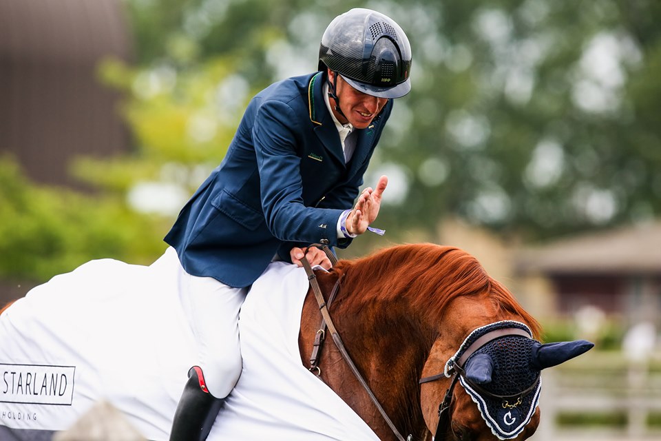 Partiamo dal principio, con la vittoria di Matias Alvaro nella 150 di questa mattina, Premio Starland, parte del CSI4*, categoria a tempo con jump off (LR gruppo D); qui il giovane cavaliere azzurro si è impegnato con Tempo des Brieres, castrone francese di 12 anni da Corland x Quat’sous, ed ha ottimizzato una prova senza errori in 33″.88. Doppio zero anche per Paris Sellon, dagli States, che assieme a SIEC Anna Jo (femmina di 10 anni da Acodetto x For Pleasure) ha fermato il cronometro in barrage a 34″.60; terza piazza invece per la Germania di Tobias Meyer, che abbiamo visto in più occasioni a podio nei giorni scorsi, e che oggi ha riconfermato il suo stato di forma in sella a Samurai, Westfalen di 11 anni da Stalypso x For Keeps (0/0 – 35″.49).