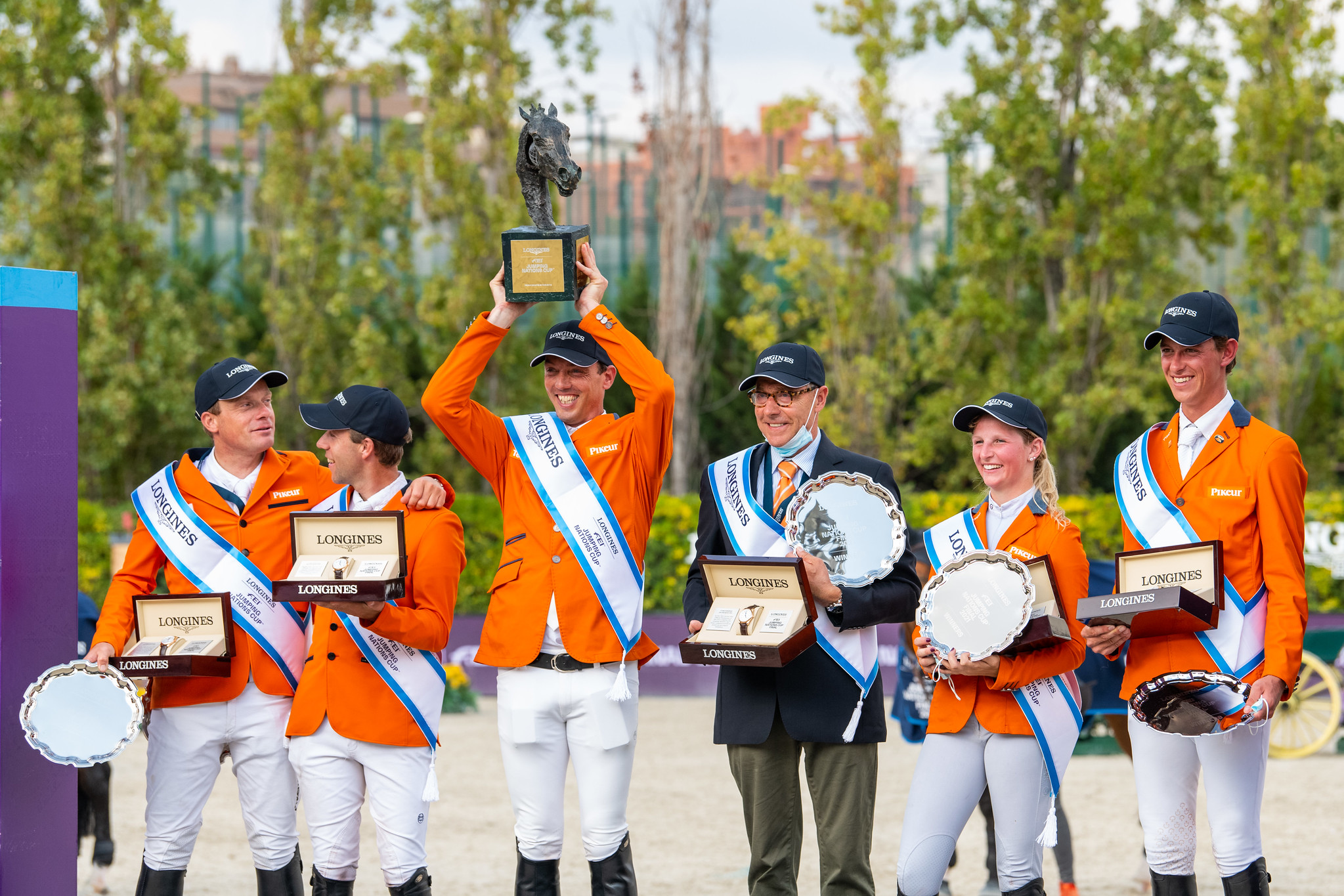 In una Finalissima combattuta, l’Olanda ha conquistato l’ambito trofeo della Longines FEI Jumping Nations Cup 2021 al Real Club de Polo di Barcellona: la squadra guidata da Rob Ehrens dopo le prove di qualifica è stata l’unica a chiudere oggi con zero penalità e dunque a meritare la vittoria. Questa è stata la terza vittoria olandese negli otto anni di storia del Circuito Longines (il team si era distinto anche nel 2014 e nel 2017).