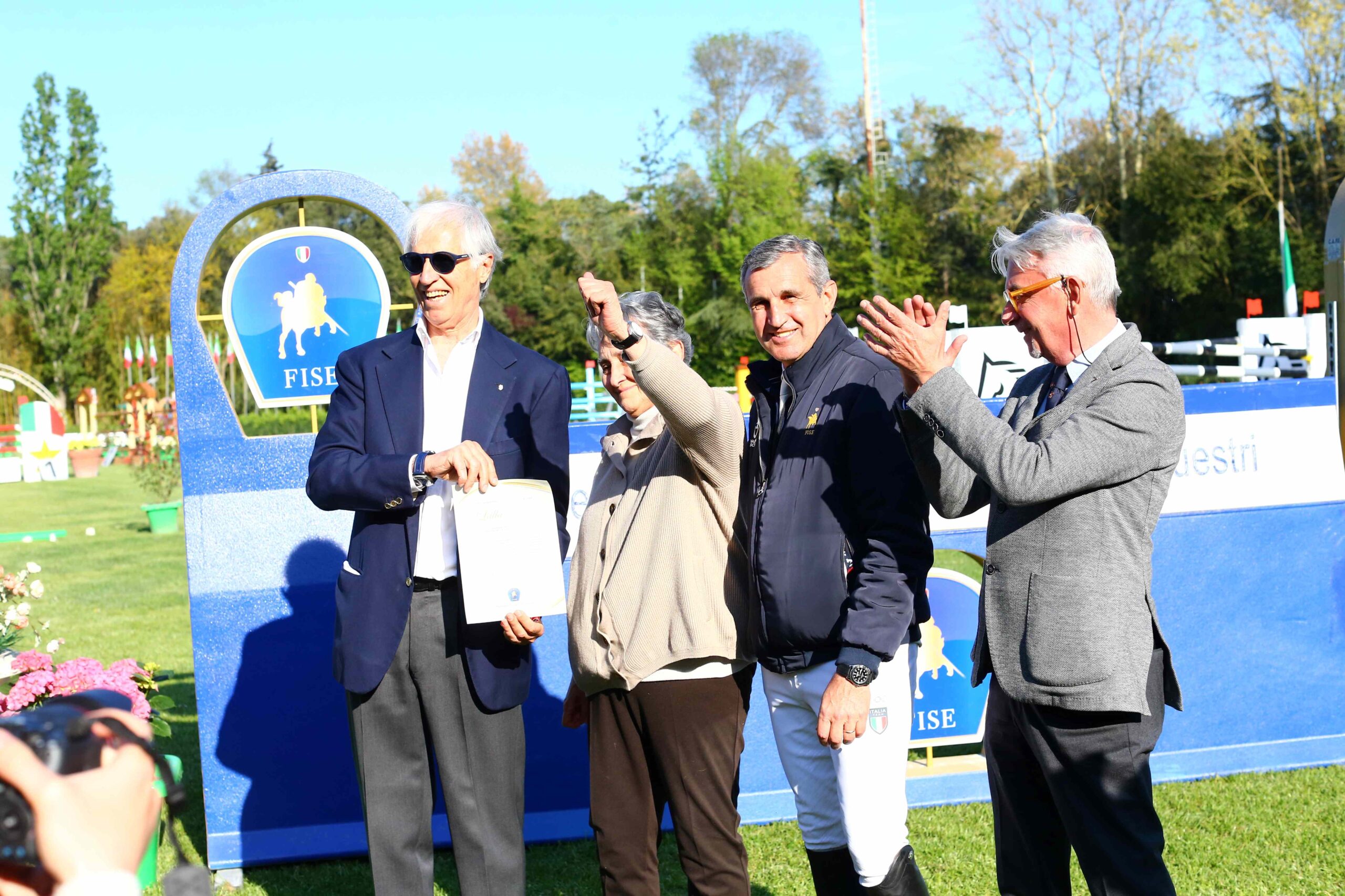 © Comunicato Stampa Le Siepi; foto: Giovanni Malagò, presidente Coni, Lalla Novo, presidente Le Siepi, Marco Di Paola, presidente Fise, Andrea Dondi, presidente Coni Emilia Romagna © Fotoshopeventi