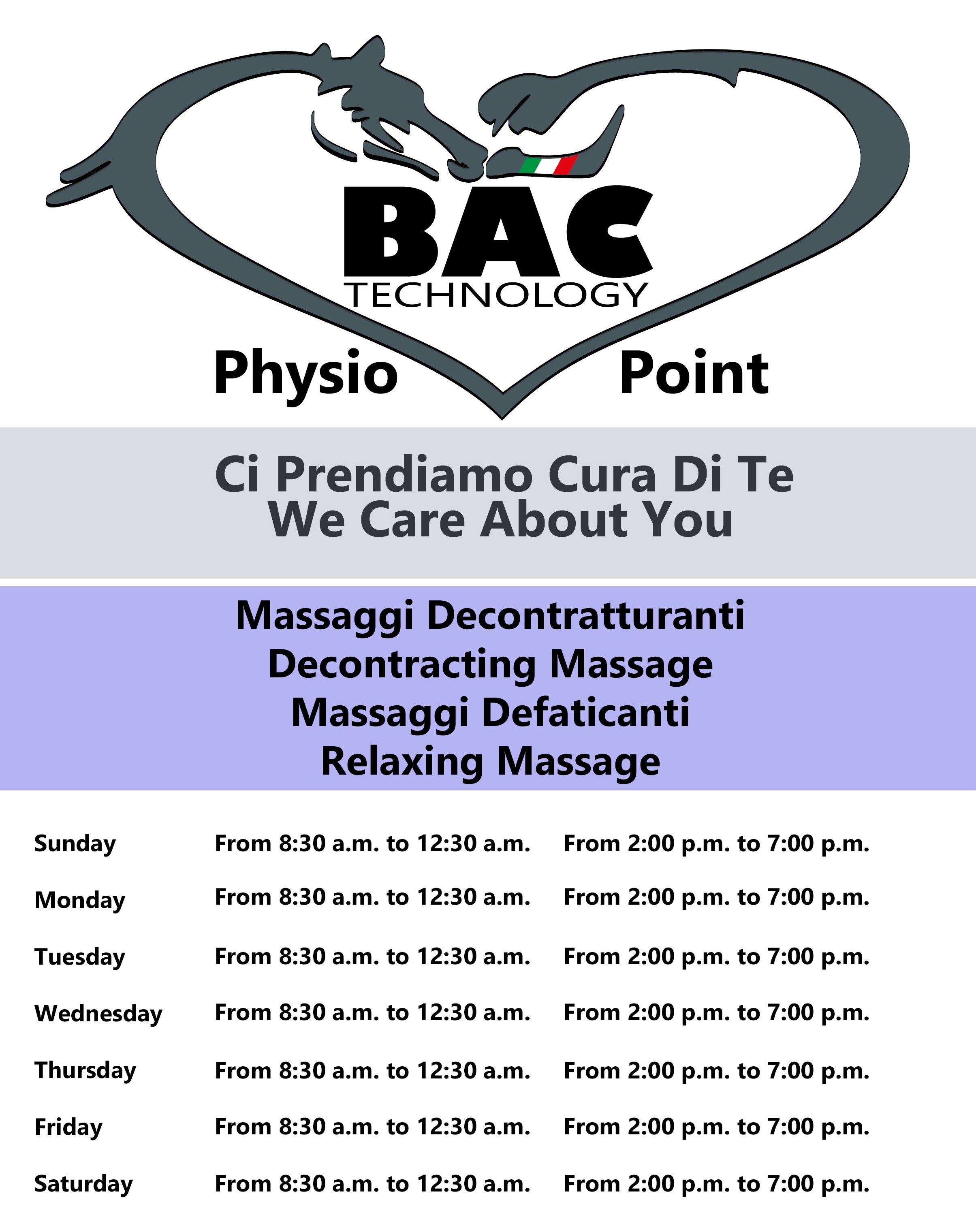 BAC TECHNOLOGY produce e commercializza dispositivi medici nel settore fisioterapico, dermatologico, riabilitativo e medicina dello sport. I dispositivi BAC TECHNOLOGY trovano applicazione sia in campo umano che veterinario: a beneficiarne possono essere sia i cavalieri, sia i cavalli.