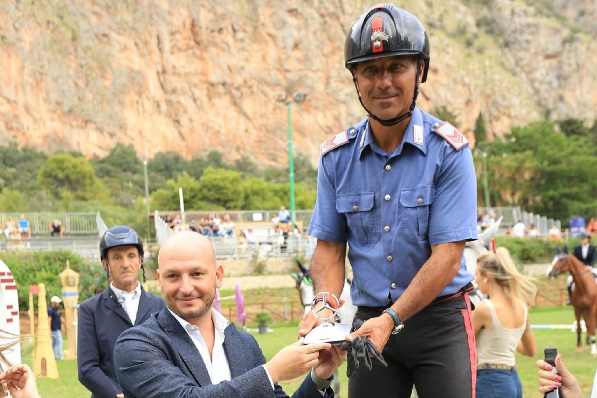 L’Italia è stata ben rappresentata dal binomio tutto italiano composto dall’Appuntato Scelto dei Carabinieri Bruno Chimirri in sella alla femmina di 10 anni Samara (Cardento x Canturo) che ha concluso con un impeccabile e velocissimo doppio netto nel tempo di 28’’.83. Questo binomio aveva già conquistato nella giornata di ieri la vittoria nella 145 Ranking. (+ informazioni: clicca qui)