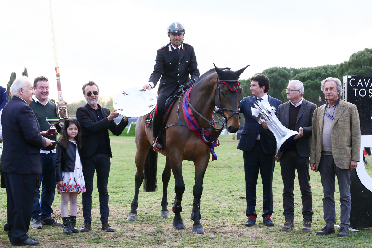 L’edizione 2018 di Toscana Tour si è chiusa con lo stesso risultato della prima domenica È stato il cavaliere del gruppo sportivo dei Carabinieri Bruno Chimirri, infatti, ha trionfare nello spettacolare Gran Premio CSI quattro stelle “Cavalleria Toscana” di scena nell’arena Boccaccio, ottenendo così il secondo risultato di spicco delle quattro settimane di gara all’Arezzo Equestrian Centre. Una competizione tiratissima quella andata in scena domenica 8 aprile davanti al pubblico delle grandi occasioni, dove i 50 binomi al via sono stati messi a dura prova fin dall’inizio da un percorso molto tecnico realizzato dagli chef de piste Elio Travagliati, Paolo Rossato e Unni Gustafsson.
