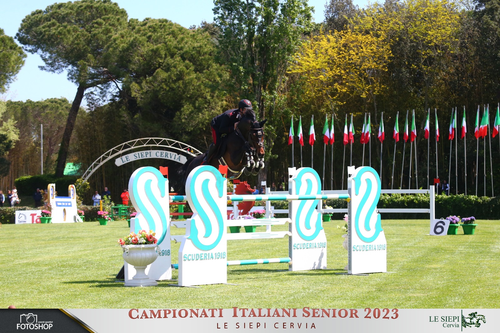 L’edizione 2023 del Campionato Italiano di Salto Ostacoli è iniziata questa mattina a Cervia (RA). Lo storico campo in erba del Circolo ippico Le Siepi ha fatto da cornice alla prima prova del Campionato Assoluto Seniores. Una categoria a tempo Tabella C di altezza 1.50 mt (in cui gli errori agli ostacoli sono trasformati in secondi di penalizzazione), che ha visto ai nastri di partenza 45 binomi. Il tracciato della categoria con un Montepremi di 5.000,00 € è stato disegnato dallo Chef de Piste di fama mondiale ed orgoglio italiano Uliano Vezzani. E la classifica, come da Tabella C, è stata determinata sulla base del minor tempo impiegato dai binomi.
