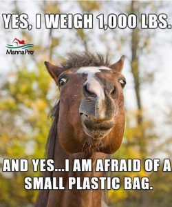 Solitamente dal temperamento molto nervoso, sceglie a proprio piacimento quello che lo terrorizzerà follemente in un dato giorno, che sarà naturalmente differente il giorno successivo. Oggi potrebbero essere dei fiori particolarmente rosa, domani il suo secchio dell’acqua. Quello che conta è che in nessun modo potrà essere persuaso che quel dato oggetto non è stato messo lì per ucciderlo (davvero in nessun modo, non provateci). Requisiti per il proprietario: pantaloni da equitazione e carattere adatto ai momenti di concitazione del suo cavallo.