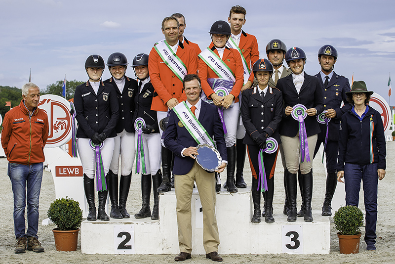 La squadra azzurra ha chiuso al terzo posto (cinque team al via) con 193.00 punti negativi con una formazione composta da Tosca Brambilla con Legaland Mood Swing (59.20 pn; 27° posto), dal 1° Aviere QS Fabio Fani Ciotti con Suttogo Georg (65.50 pn; 30°), dal caporal maggiore capo Roberto Riganelli con Djakarta de Mancy (68.30 pn; 31°) e dal carabiniere Arianna Schivo con Altesse de l’Ormeau (119.40; 43^).