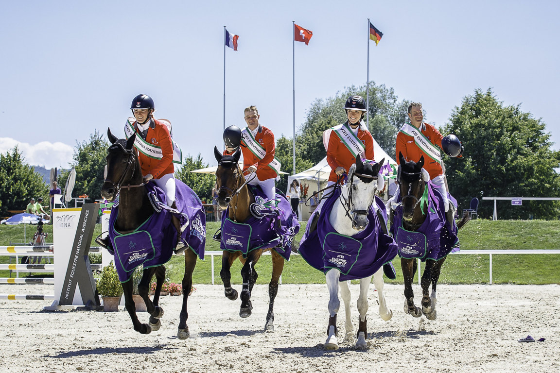 La squadra della Svizzera dopo aver vinto entrambe le tappe a cui ha partecipato si sta dimostrando essere “quella da tenere d’occhio” nella FEI Eventing Nations Cup™ di quest’anno. In entrambe le occasioni, i completisti elvetici hanno vinto sia premi a squadre che individuali nei CCIO4*-NC-S. Dopo essersi portati in testa alla classifica lo scorso maggio nella gara di apertura della stagione ai Pratoni del Vivaro – Roma (ITA), questa volta hanno deliziato il pubblico di casa ad Avenches. Questo promettente quartetto – tre dei quali avevano già gareggiato a Roma – ha mostrato particolari abilità nelle due prove di salto, per finire con un punteggio di 127,7.