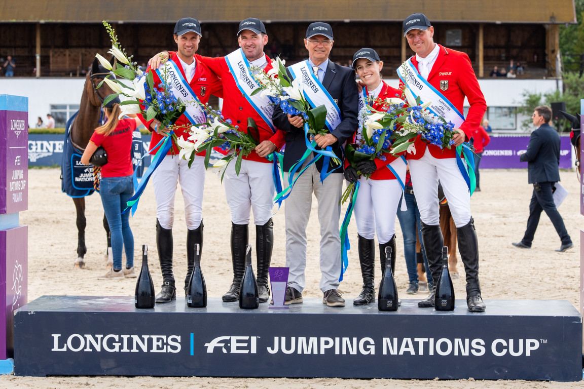 Per il secondo anno consecutivo, la squadra della Germania ha dominato sovrana nella Longines FEI Jumping Nations Cup™ a Sopot in Polonia questo pomeriggio, dove la Francia è arrivata seconda e la Svizzera terza.