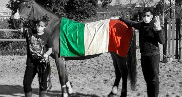A questo si è aggiunto un gesto dal significato patriottico, ovvero lo stendere la bandiera italiana sul dorso del proprio cavallo o anche (lo hanno fatto in molti) sventolare il tricolore all’interno della propria scuderia, in segno di fratellanza ed unione con tutta l’Italia che in questo periodo sta soffrendo in ogni senso, certo non solo per il distacco forzato di tutti noi dai nostri amati quadrupedi.