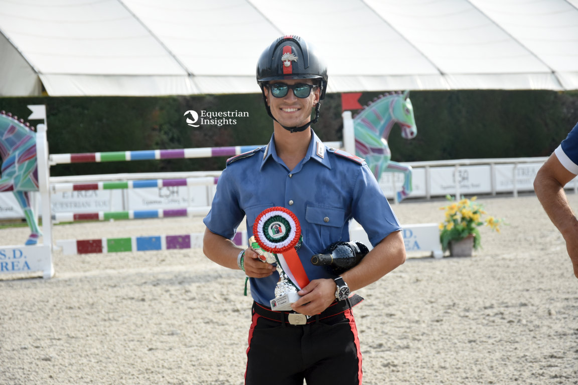 Fra i molti italiani in gara si è distinta la 1° Aviere Capo Giulia Martinengo Marquet in sella a Casper VD Rode Poelhoeve, castrone del 2011 (Casall Ask x Quinar), in sesta posizione (61″.53) e Riccardo Pisani che sulla femmina Oldenburg Seronera (Chacco Blue x Cartogran) ha concluso il percorso in 62″.33 conquistando così  la nona posizione.