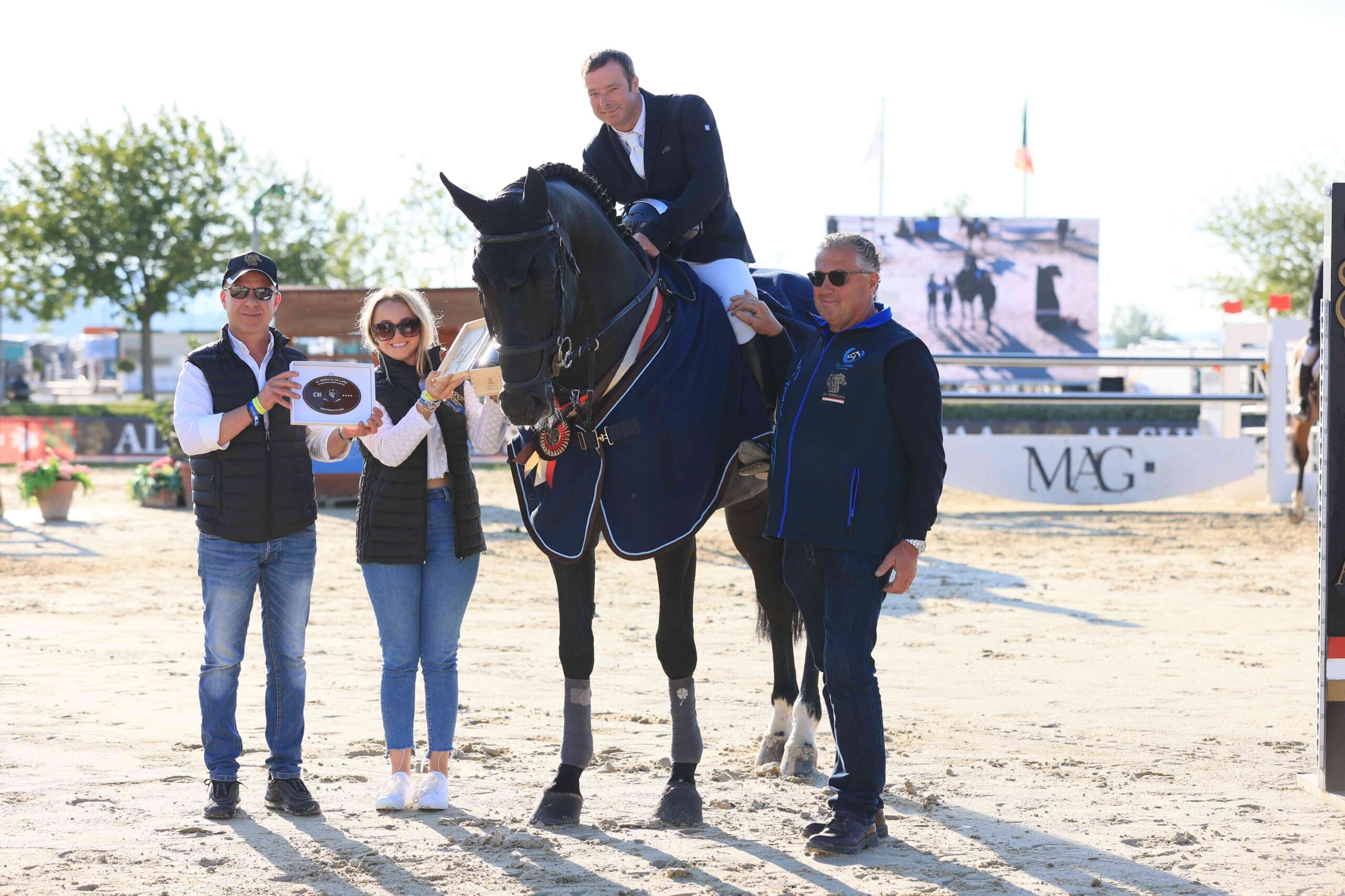 A porre la propria firma sulla categoria è stato Robert Whitaker. Il cavaliere britannico ha conquistato la prima posizione con Vermento. Lo stallone morello di 9 anni figlio di Argento con mamma da Skippy II è stato autore del netto chiuso nel tempo più veloce di 26”.67. Vincendo così la classe più importante della giornata tra gli applausi del pubblico.