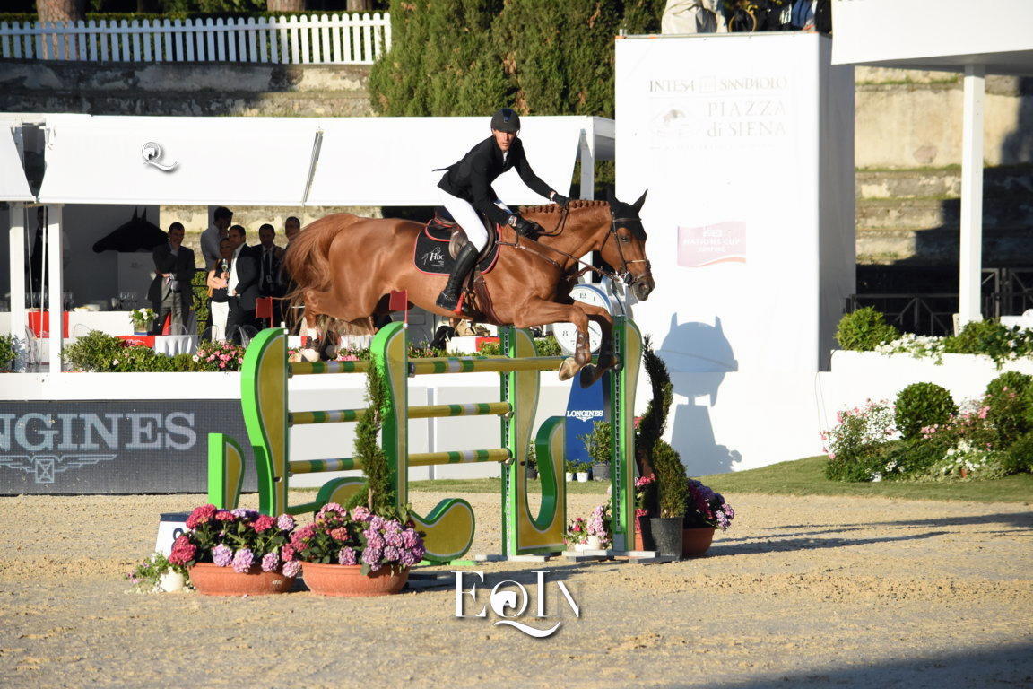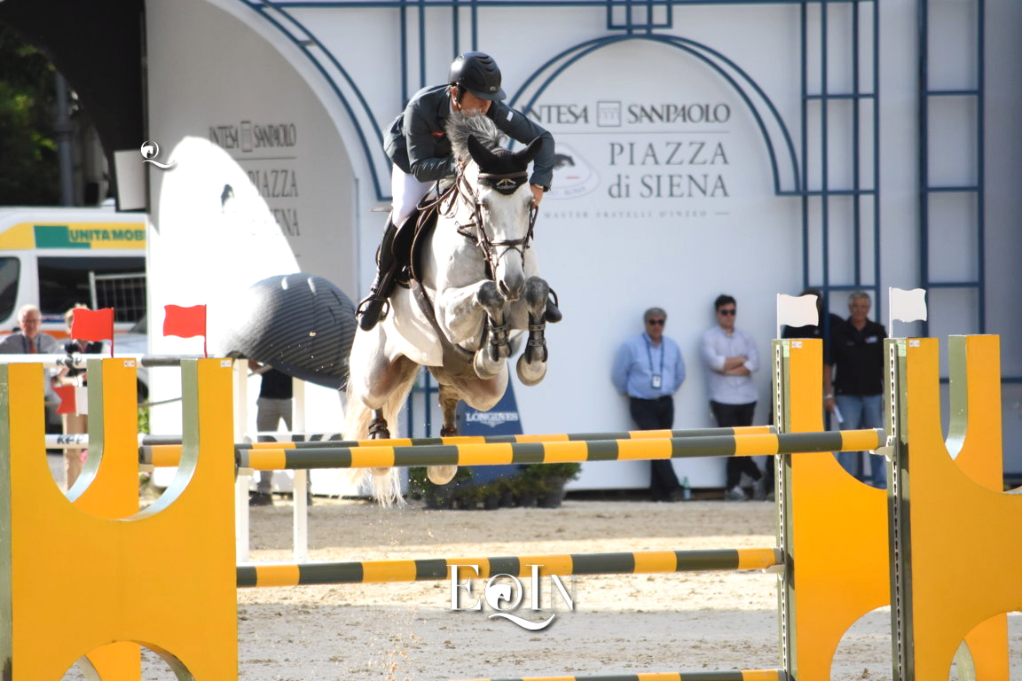 La copertina dell’articolo è riservata allo young rider senese Guido Franchi (19 anni il prossimo dicembre) e alla sua impeccabile prestazione, prova ha portato l’Italia in 4^ posizione nell’odierna gara alta, la più importante della giornata, dell’85° CSIO di Roma – Piazza di Siena, Master fratelli d’Inzeo. Splendido percorso netto in sella a Quixotic DC nella competizione a tempo (Tab.A) con ostacoli ad h 1, 55 mt (Premio n. 3 – Intesa San Paolo), chiusa in 70:40sec.