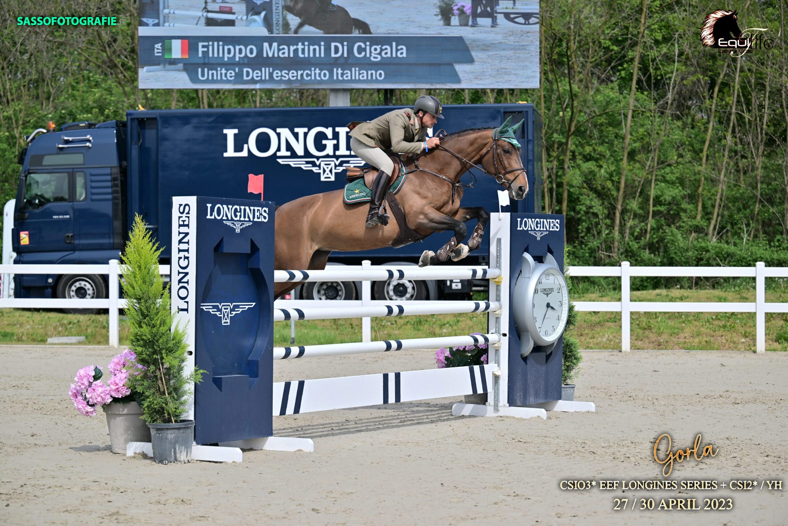 © Equestrian Insights / Press Office CSIO Gorla 2023; foto: Filippo Martini di Cigala con Unité dell’Esercito Italiano. © Sasso Fotografie / Equieffe