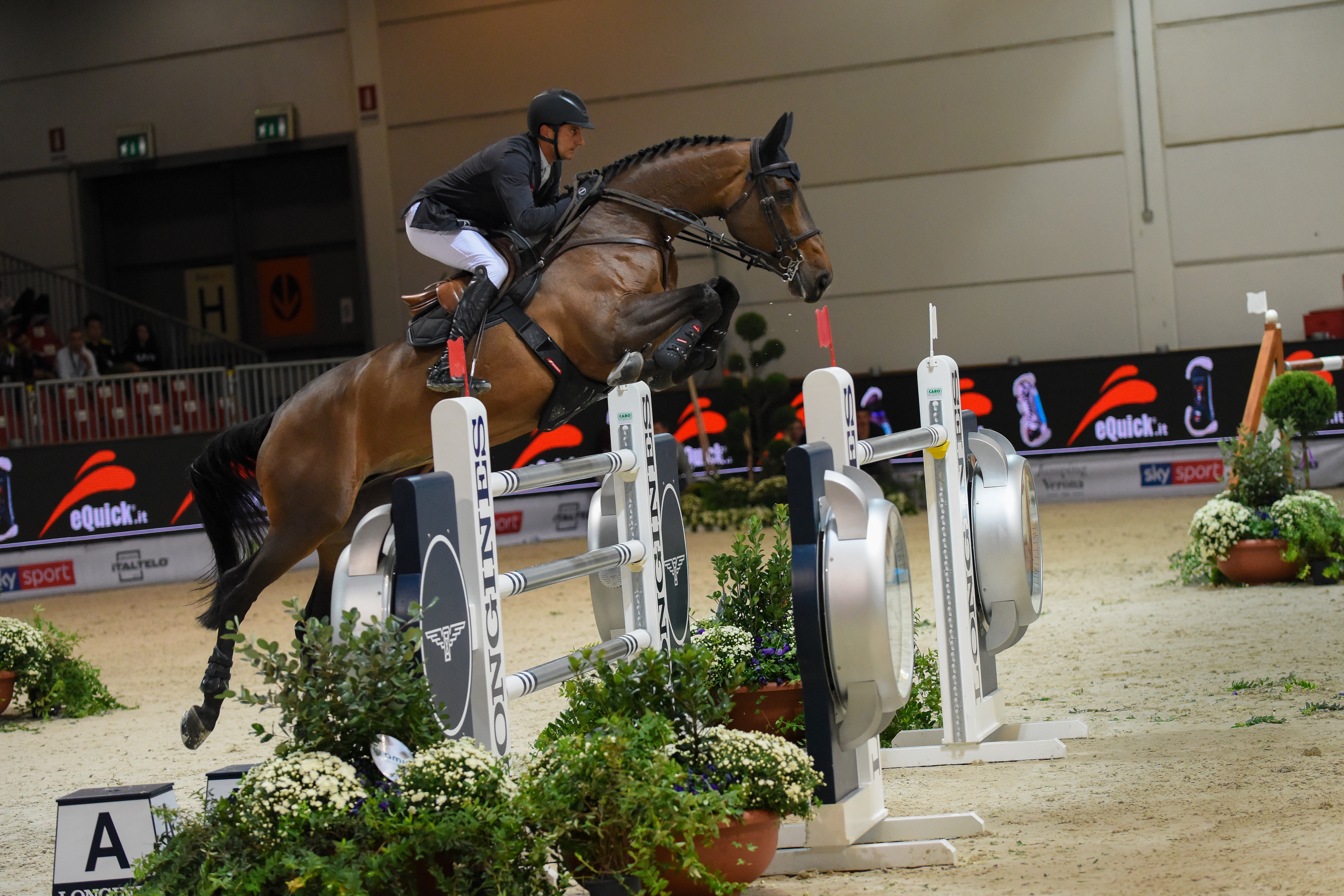 Il cavaliere aquilano di 44 anni, si è imposto nella spettacolare prova ad altezze progressive, che si articola su sei verticali disposti in linea retta ed equidistanti tra loro, registrando quattro percorsi netti e meritando così di diritto il primo posto ex equo con il cavaliere austriaco Max Kuhner (in sella a Chardonnay 79, Holsteiner classe 2007 da Clarimo x Corrado I). Sia Bucci che Kuhner hanno deciso di non partecipare al round successivo, stabilendo così di occupare insieme la vetta del podio della gara.