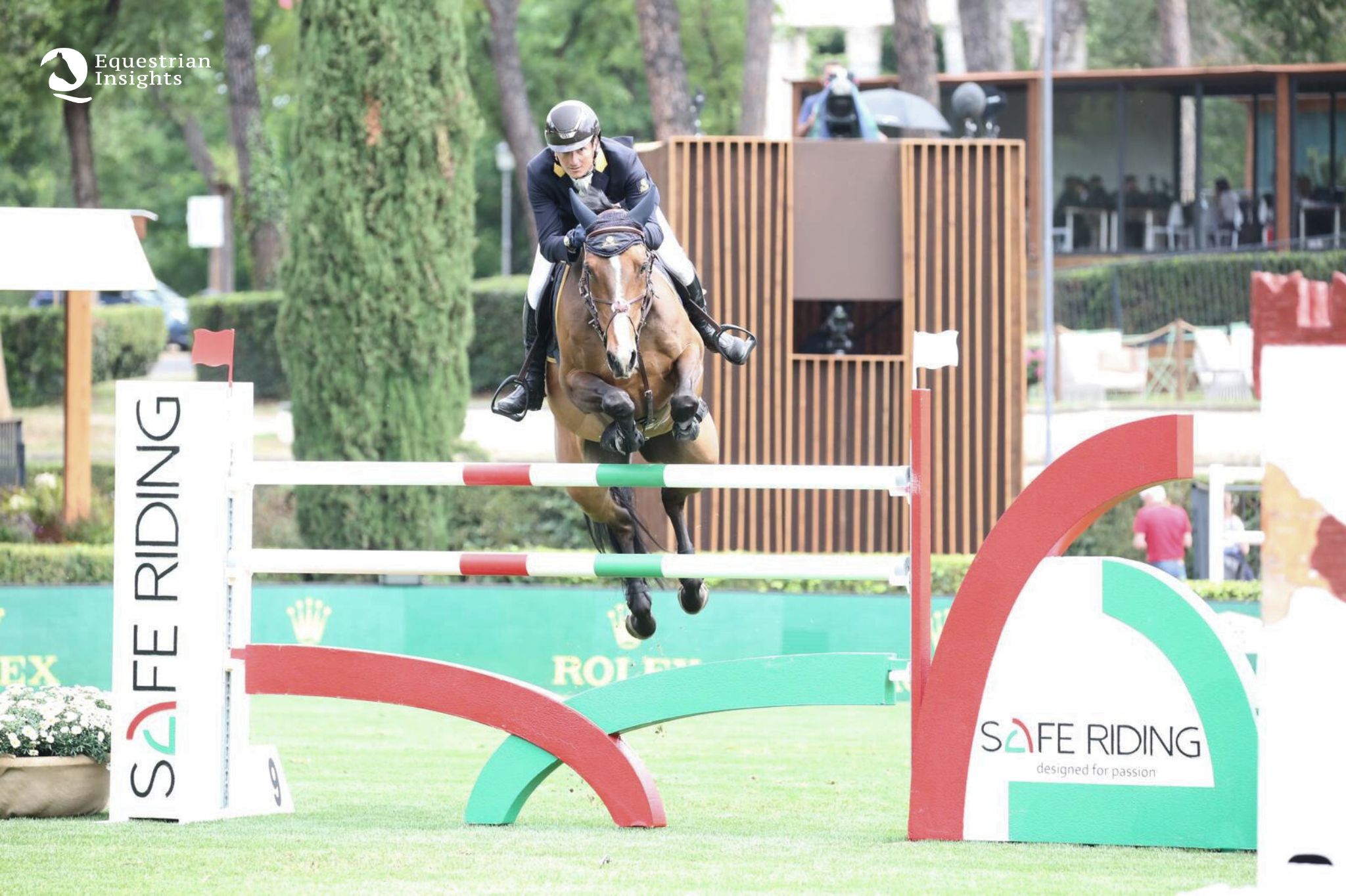Lo CSIO5* di Roma – Master d’Inzeo, l’evento outdoor dell’anno per quanto riguarda il salto ostacoli azzurro, ha aperto le danze questa mattina nell’ovale di Villa Borghese. Prima categoria offerta dal ricco programma gare è stata la 1.45 mt Winning Round presentata da Safe Riding. Una classe dal Montepremi di 29.000,00 € valida per la Longines Ranking Jumping. L’equipe di Course Designer composta dal “Maestro” Uliano Vezzani, Mario Breccia, Paolo Rossato e Marco Latini ha ideato un giro base di 12 salti per 15 sforzi totali, a cui è seguito per i 13 migliori binomi il Winning Round che si è disputato su ulteriori 8 ostacoli.
