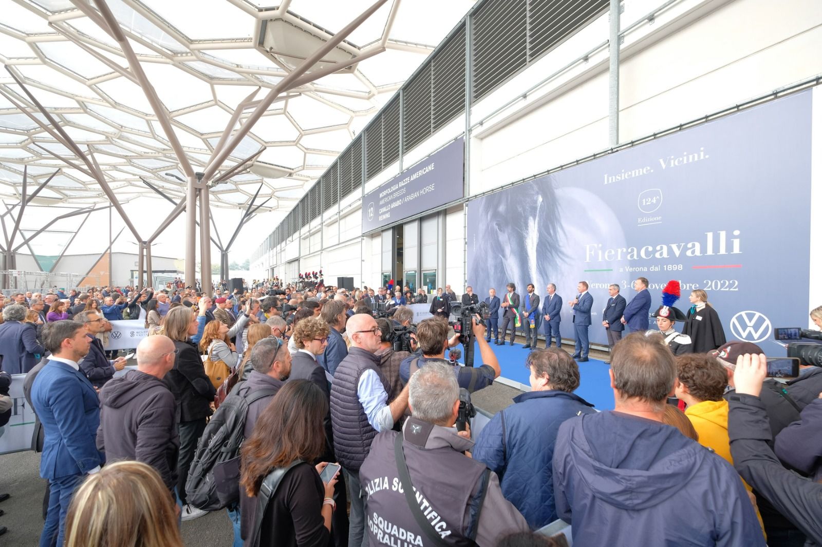 All’inaugurazione presenti anche Luca Zaia, presidente della Regione Veneto, Damiano Tommasi, sindaco di Verona, Manuel Scalzotto, presidente della Provincia di Verona, Federico Bricolo, presidente di Veronafiere, Maurizio Danese, amministratore delegato di Veronafiere, Marco Di Paola, presidente della Federazione italiana sport equestri, Carlo Ferro, presidente di Agenzia ICE, e Domenico Pompili, vescovo di Verona.