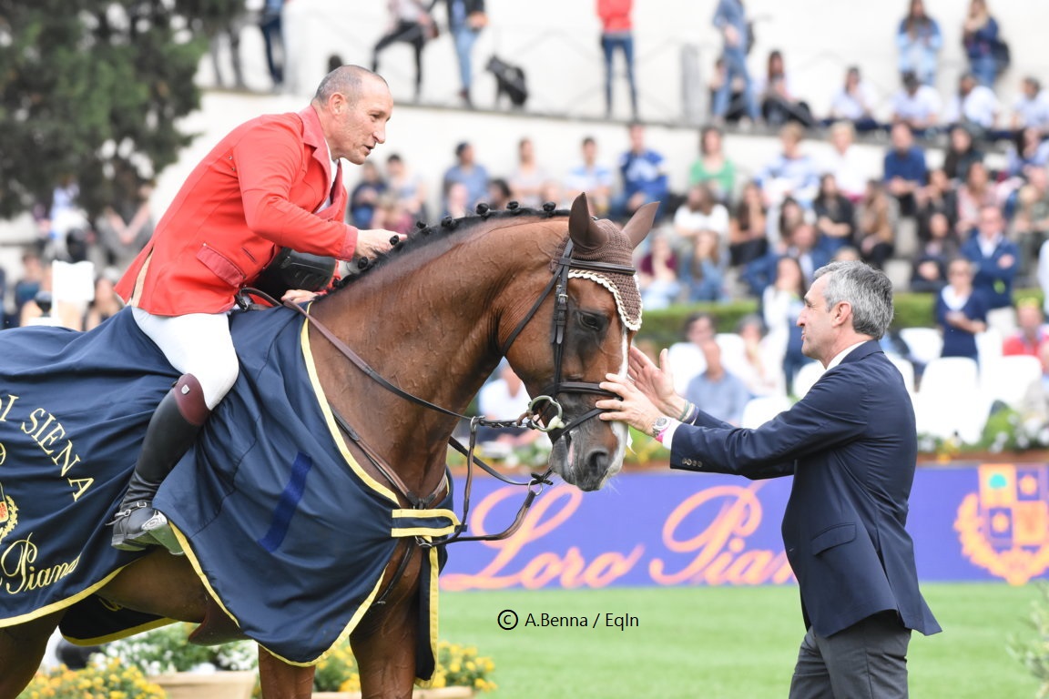 © Redaz.; riproduzione riservata; fonte: Italpress red 25-Mag-20 ; 20:04; foto © A.Benna / EqIn: il Presidente FISE Di Paola alla Premiazione del Piccolo GP di Piazza di Siena 2019 incontra Paolo Adorno su Fer ZG (3° gradino del podio per loro).