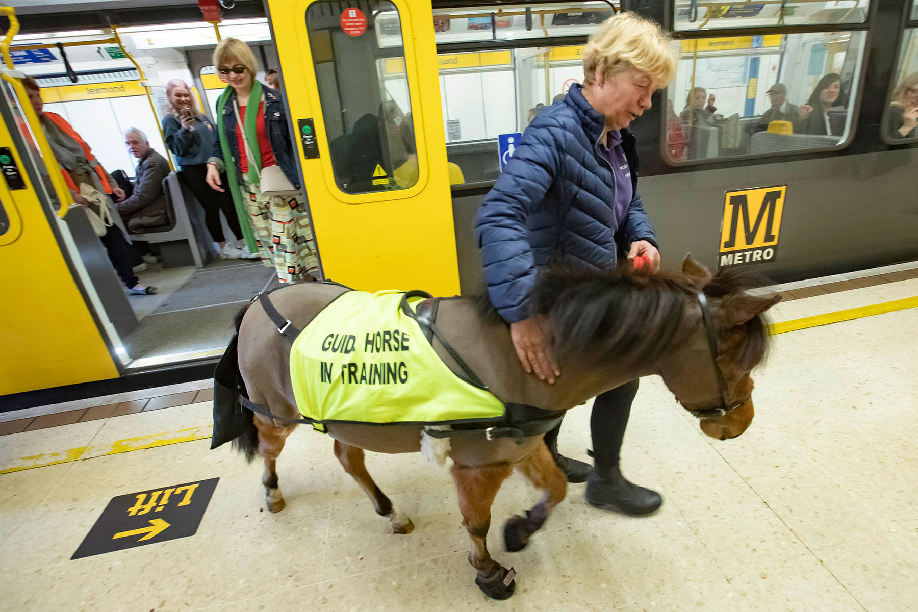 I pendolari di una frenetica città inglese hanno di recente visto qualcosa di strano mentre salivano in metropolitana: è frequente incontrare persone, magari anche stipate in piedi, mentre è piuttosto anomalo vedere un passeggero in piedi su… quattro gambe! Tra i passeggeri in carrozza vi era infatti un meraviglioso mini horse americano di nome Digby, che si ritiene essere il primo cavallo-guida del Regno Unito. Il viaggio di Digby nella Tyne and Wear Metro è stato l’ultimo step della sua formazione con l’allevatrice Katy Smith, che gestisce la KL Pony Therapy nel North Yorkshire, e sta cercando di preparare questo giovane cavallo molto speciale e molto amato per assistere le persone con problemi di vista: un equide ad assolvere l’importante ruolo di assistenza che di solito è riservato ai cani.