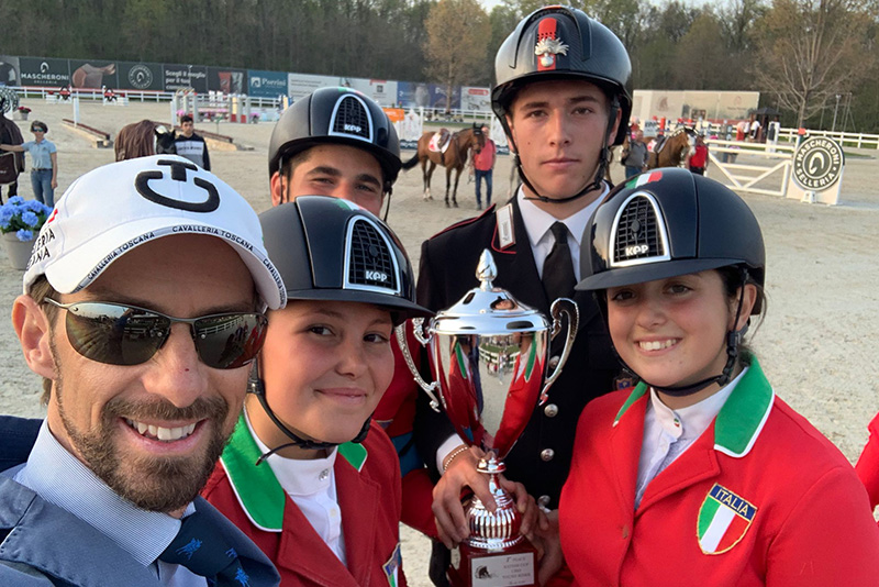 Ma non è finita: dopo la bella vittoria della squadra Junior, nella serata di oggi, venerdì 15 aprile, è prevalso ancora il tricolore italiano, stavolta grazie ai ragazzi della squadra Young Rider, team sempre agli ordini dello Chef d’Equipe Marco Bergomi.