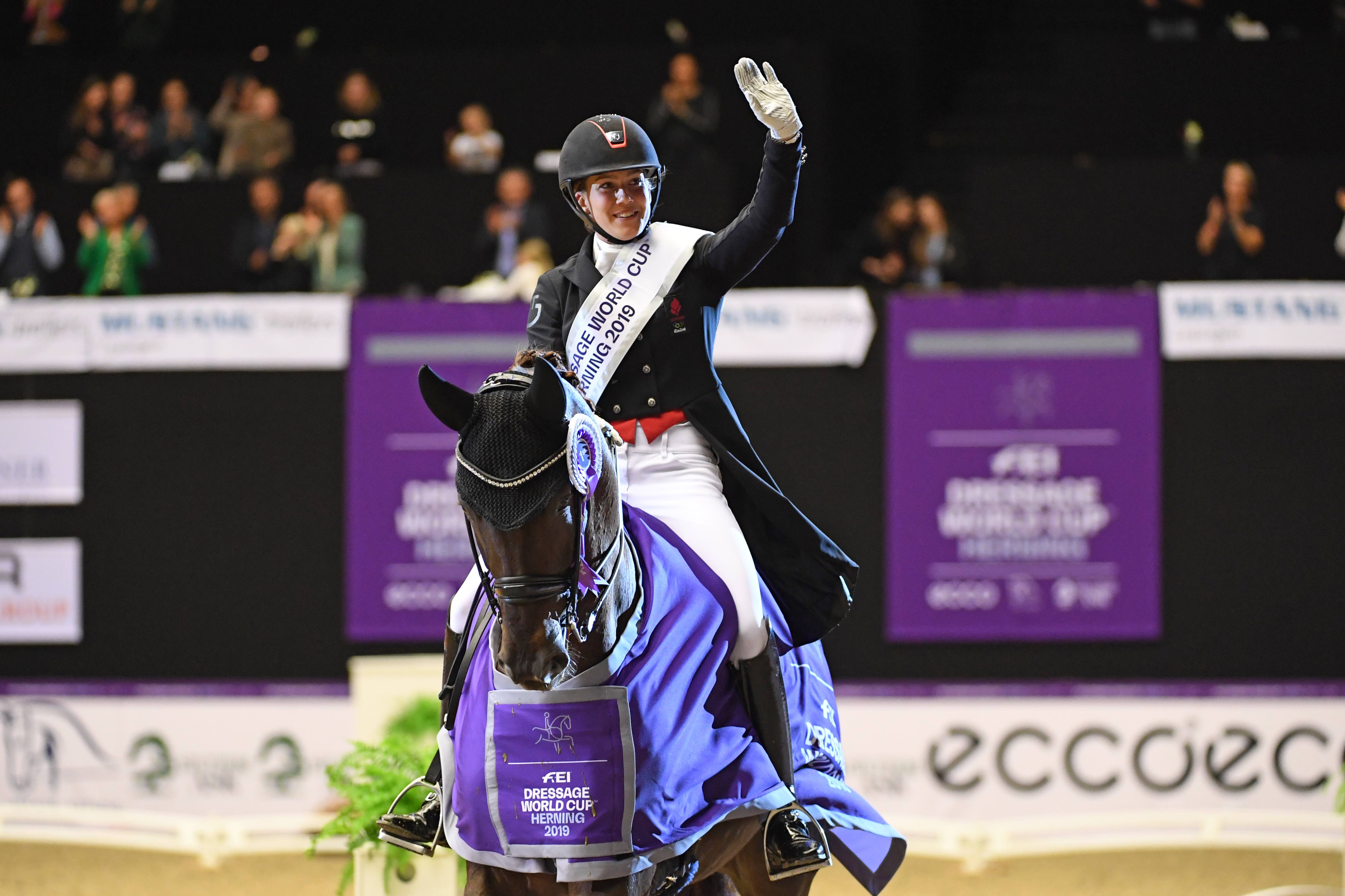 In sella al suo entusiasmante giovane castrone westfaliano (9 anni, Bordeaux x Samarant), ha ottenuto un clamoroso 83.022% che le è valso la vittoria in Grand Prix; eccellente anche in Freestyle (con l’88.191%), risultati che l’han vista piazzarsi molto lontana dai suoi rivali più prossimi, i tedeschi Benjamin Werndl con Daily Mirror 9 ed Helen Langehanenberg con Damsey FRH (rispettivamente in seconda e terza posizione).