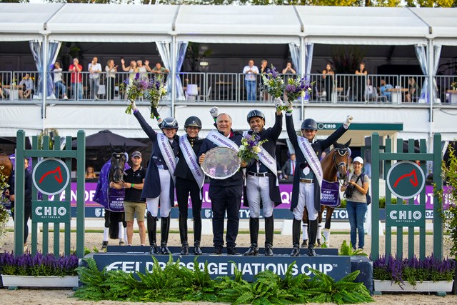 Sabato, a Rotterdam, è stata scritta una pagina di storia, quando la Francia ha registrato un’eclatante vittoria nella FEI Dressage Nations Cup™ olandese, la prima per la nazione in questo evento. Guidata dallo Chef d’Equipe Jean Morel, il team composto da Alexandre Ayache (Jolene), Pauline Basquin (Sertorius de Rima Z Ifce), Corentin Pottier (Gotilas du Feuillard) e Morgan Barbançon (Habana Libre A) ha concluso le prove del FEI Grand Prix, Grand Prix Special e Grand Prix Freestyle con un totale di soli 11 punti.