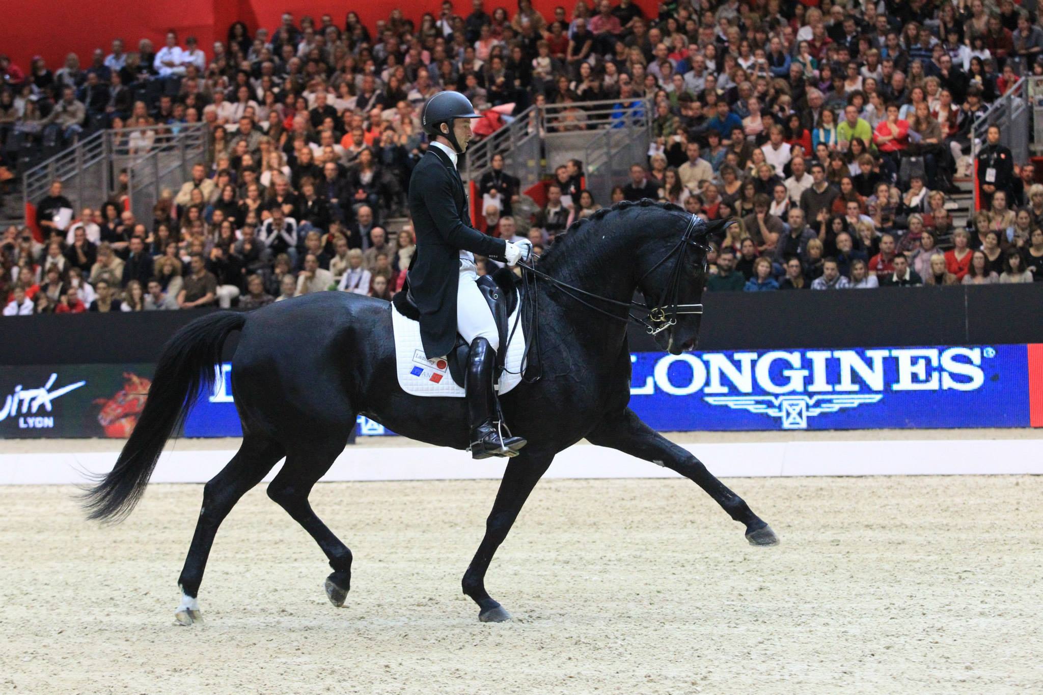 © L. Ruffino – riproduzione riservata; fonte: grandprix.info – dressprod.com; foto: Noble Dream e Marc Boblet durante la Finale di Coppa del Mondo di Lione 2014 © archivio Facebook Noble Dream