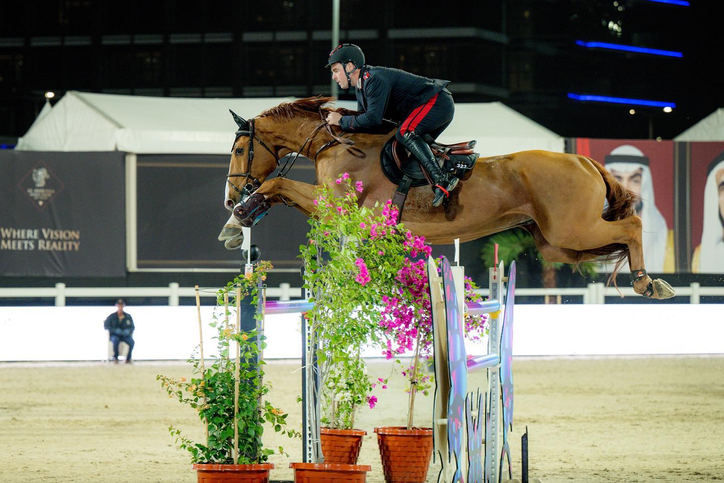 Ultimo a fare il suo ingresso nella prima manche del Gran Premio di Abu Dhabi, Emanuele Gaudiano accompagnato dal fidato Chalou dopo aver provveduto a siglare un percorso netto al base il cavaliere azzurro si è ripetuto in barrage. Ottenendo in questo modo il tempo più veloce che gli ha consentito di portarsi in testa alla classifica del prestigioso Grand Prix, facendo fermare le lancette del cronometro sui 42”.56 e vincendo, tra gli altri premi, la somma di 38.125,00 €.