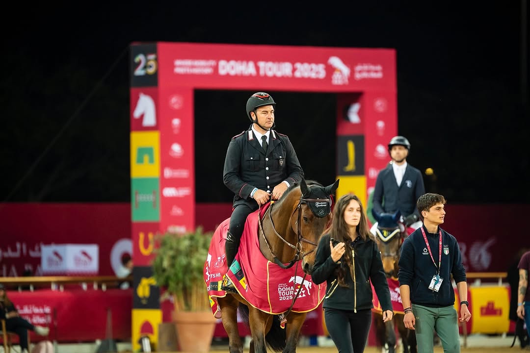 Il cavaliere azzurro Emanuele Gaudiano da tre settimane in Qatar, firma la 145 LR di oggi al CSI5* di Doha.