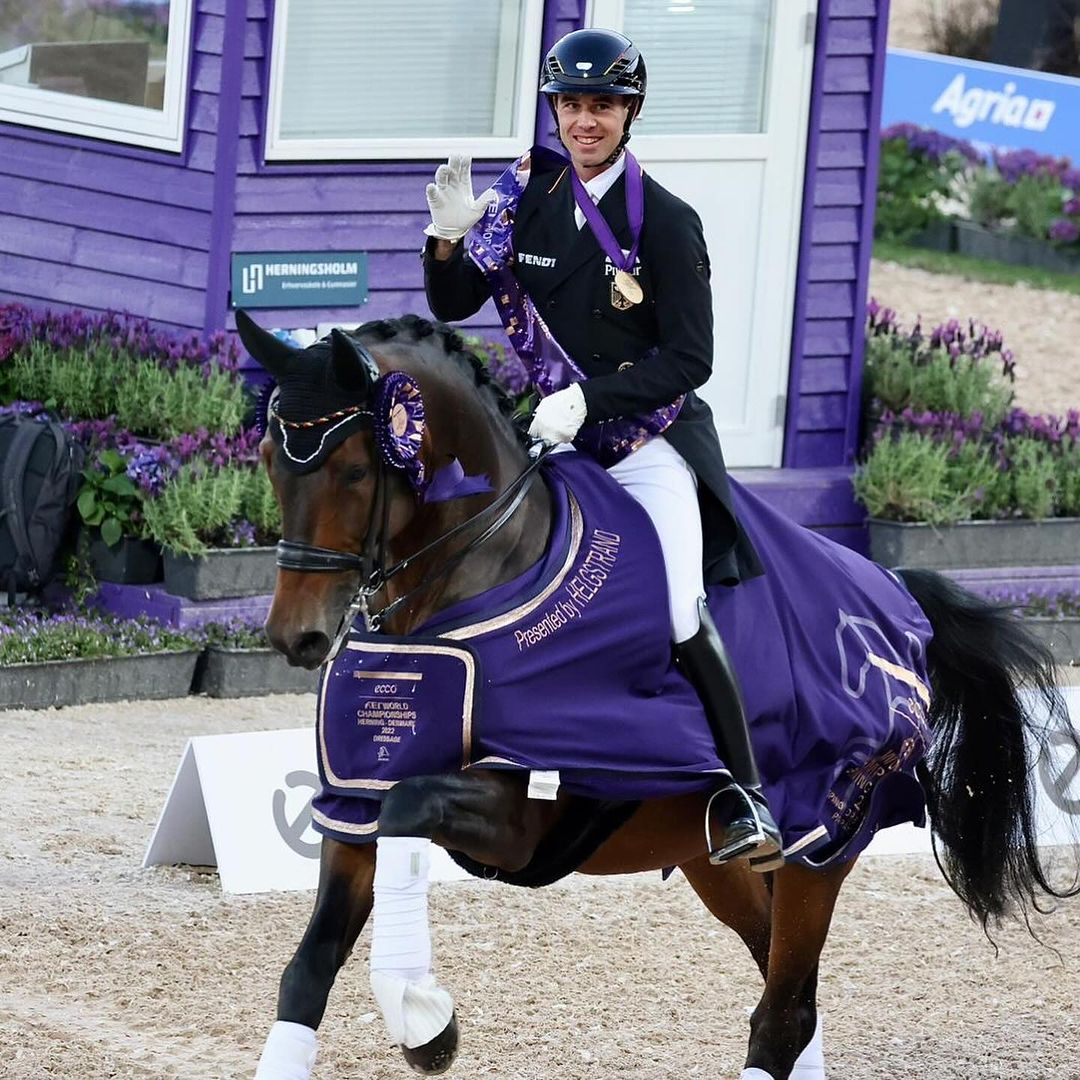 Famoso OLD (2009, castrone, Oldenburg, Farewell III x Welt Hit II) è arrivato nella scuderia di Benjamin Werndl all’età di sette anni. Dopo due anni di lavoro, Werndl e Famoso hanno esordito ai massimi livelli. Il momento più importante del binomio è stato nel 2022 quando ha debuttato al Campionato del Mondo a Herning (DEN) ottenendo il bronzo a squadre ed il record individuale di Famoso in tutte e tre le prove (77,003% nel Grand Prix, il 78,237% nel GP Special e l’85,893% nel GP Freestyle). Per Benjamin Werndl, classe 1984, fratello di Jessica von Bredow- Werndl (medaglia d’oro alle Olimpiadi), questo è stato un appuntamento che sicuramente ha segnato la sua carriera e da lì in poi sono state numerose le sue presenze sui rettangoli internazionali.