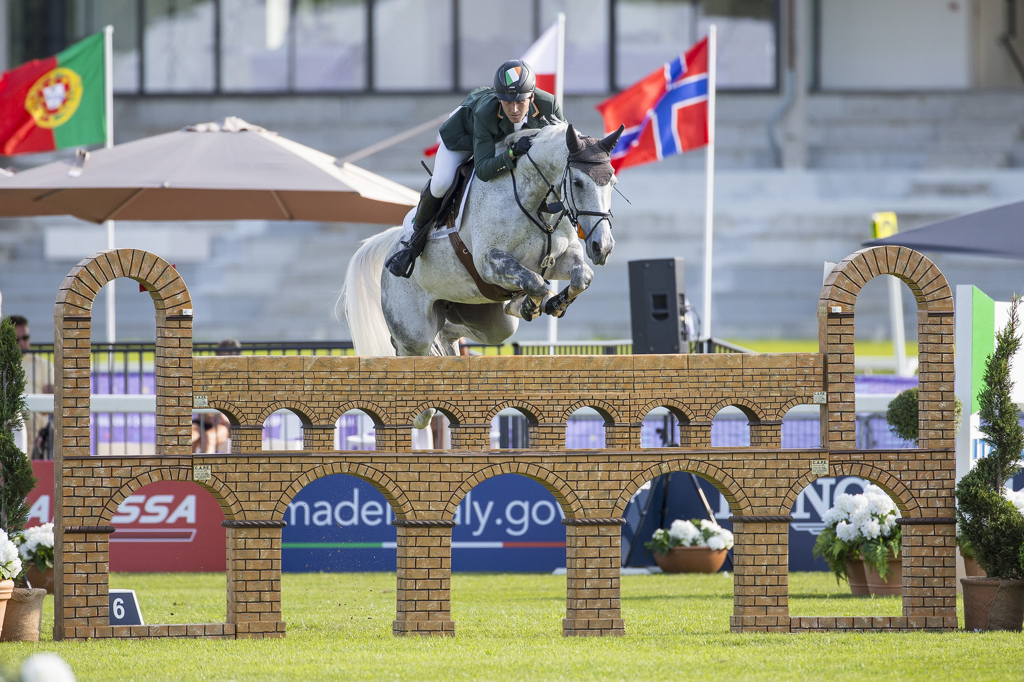 © L. Ruffino – riproduzione riservata; foto: Eoin McMahon (IRL) in sella a Mila durante la prima qualifica individuale al FEI Jumping European Championship di Milano 2023 © FEI/Leanjo de Koster
