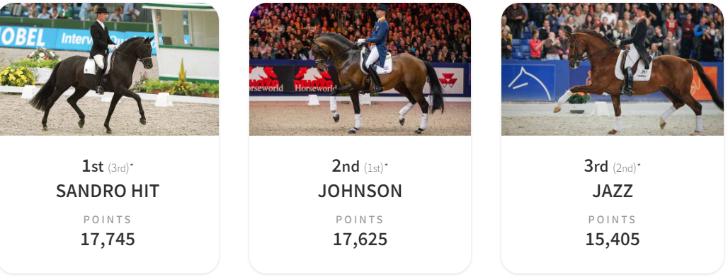Dal lato genealogico per la disciplina del dressage il miglior Studbook è il KWPN, seguito da quello Hannover e Oldenburg. Gli ottimi risultati raggiunti ai Giochi Olimpici da Gio con la Dujardin sono stati fondamentali per la leadership del libro olandese; idem quelli del figlio di Totilas, Glock’s Total US con Edward Gal per quello hannoveriano.