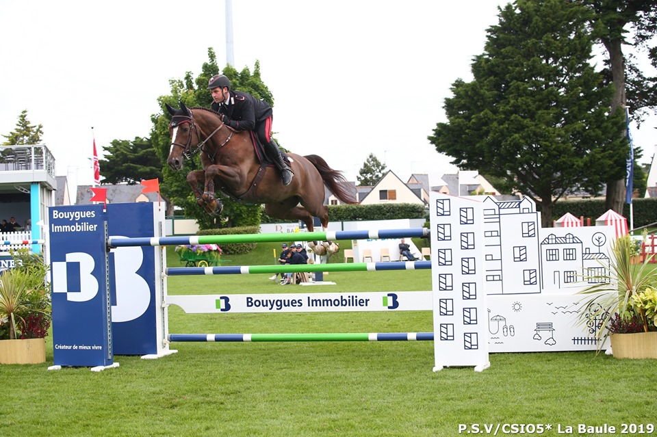 Il nostro carabiniere scelto, insieme a Kingston van het Eikenhof, BWP di 9 anni da Epleaser van t Heike x Alexis Z, fa sua la piazza d’onore della 145 against the clock di La Baule (competizione valida per la Computer List Longines, Prix Bouygues Immobilier), fermando il cronometro a 63.28” senza commettere errori agli ostacoli. A precederlo sul podio della classifica con 59 binomi al via, il cavaliere di casa Olivier Guillon, che a sua volta mette a segno un percorso privo di sbavature in 59.66’’ in sella a Vitot du Chateau (Selle Francaise di 10 anni da Toulon x Kannan) vincendo la gara; in terza posizione vediamo invece la Svizzera di Steve Guerdat e Flair (KWPN di 9 anni da Zirocco Blue vdl x Indoctro) che chiudono la loro prova immolata in 63.34”.
