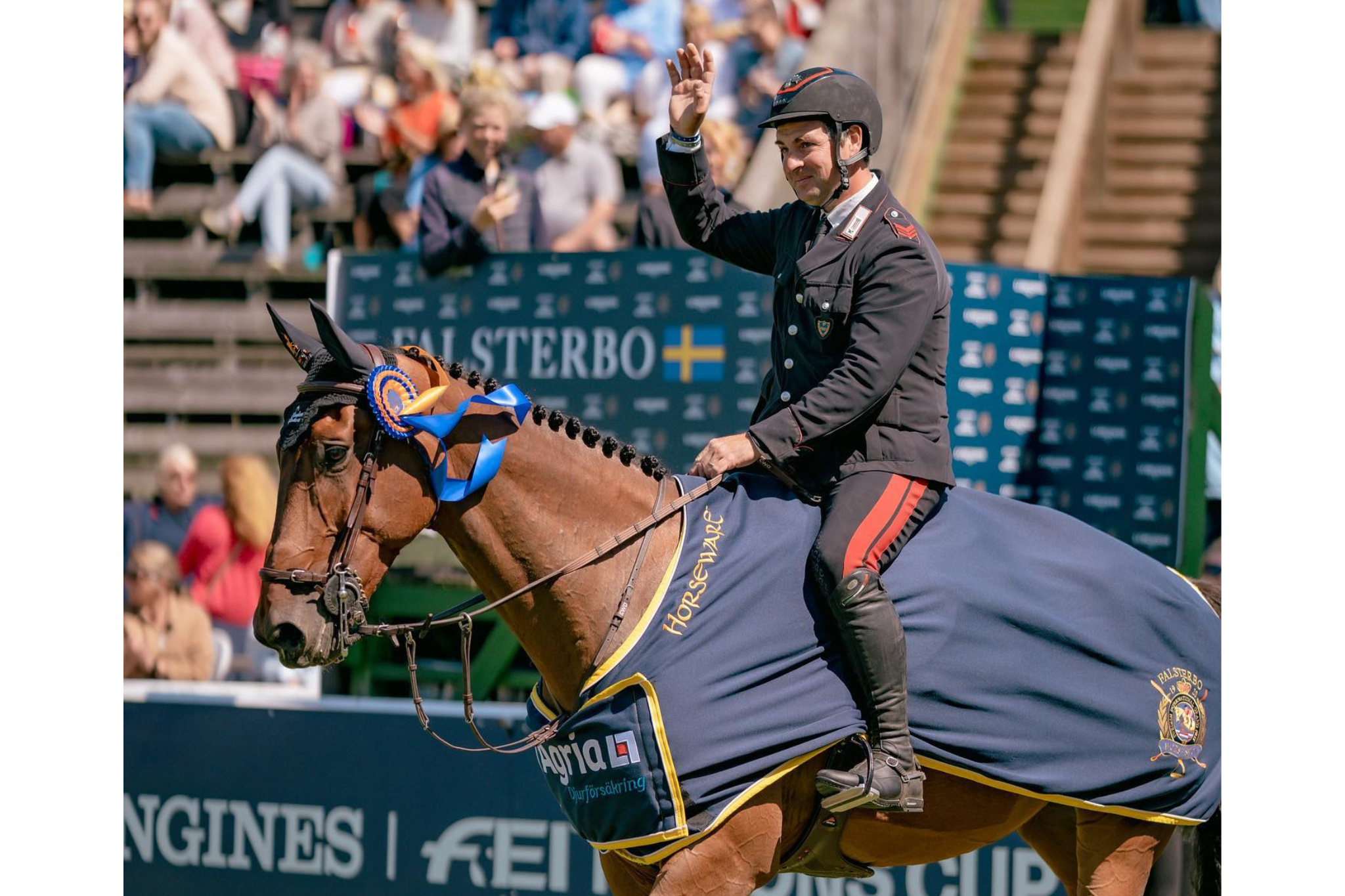 L’Appuntato dell’Arma dei Carabinieri Emanuele Gaudiano ci ha dato prova oggi ancora una volta della sua ottima forma e del suo affiatamento con le cavalcature con cui affronta le competizioni più importanti: impegnato con il team Italia (proprio mentre scriviamo) in Coppa delle Nazioni dello CSIO5* di Falsterbo (Svezia, iniziata alle h 14.00), ha trionfato nella mattinata di oggi nella 145 Agria Trophy, qualificante per il Falsterbo Derby (Montepremi 86.000,00 corone, 8.000,00 euro ca.).