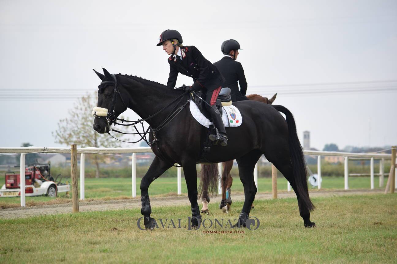 Due le categorie nazionali della disciplina di Completo disputate negli impianti di Vairano Pavese: tutte le prove si sono svolte in un solo giorno, sabato 22 ottobre. Per ciò che riguarda il CNC2* (xc course di 3.100 mt totali, velocità 550 m/min, opt. time: 5:39), la vittoria è andata all’App. scelto Stefano Brecciaroli: in sella al suo irlandese Viscount George (2004), ha concluso le tre prove con 51,10 pn totali (migliore prova in dressage della categoria – chiusa con 41,40pn – netto in salto ostacoli e in cross country – miglior percorso, terminato in 6:04 con 10,00 pn per il tempo).