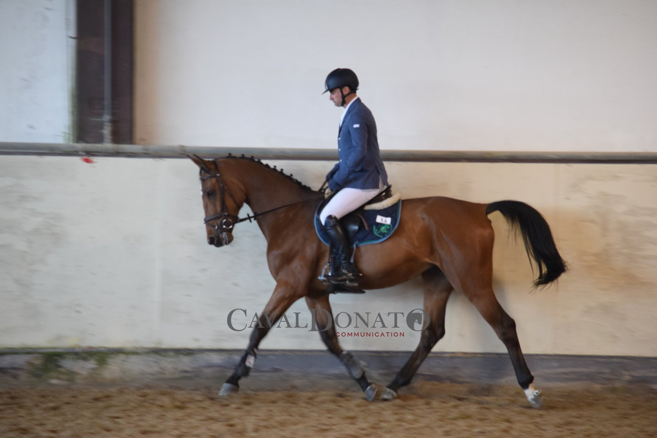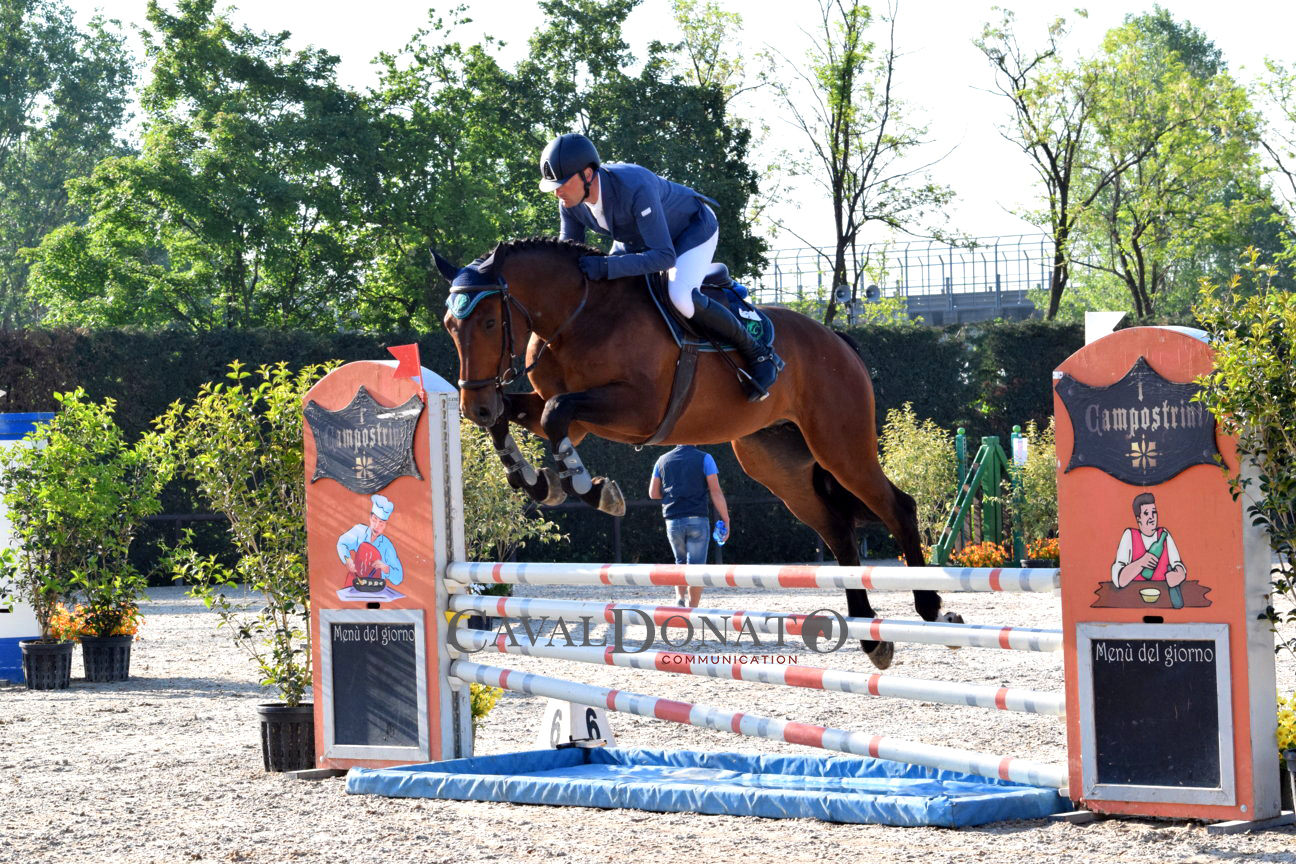 Tre i puledri nati nel 2012 con cui Marco Capaldini (per conto dell’Allevamento Petrognano) si è misurato in questa seconda Tappa Top nelle categorie a giudizio riservate ai 4 anni (h: 1mt, come previsto dal regolamento delle tappe del 1° periodo) nelle giornate di sabato 7 e domenica 8 maggio (circa una quarantina i binomi partecipanti in queste categorie). Ricordiamo che il sistema di valutazione a giudizio, differentemente da quello a penalità, esprime una valutazione complessiva sulla preparazione del giovane cavallo tramite l’espressione di un voto finale sul salto e sulle sue potenzialità (status, qualità andature/movimenti, svolgimento, tecnica, agilità e forza). Percorsi netti per Capaldini entrambi i giorni in sella all’Hannover Lindt (da Lincolm L x Contendro x Acord II), riportando il punteggio di 84,25 il primo giorno, 88,5 il secondo; per questo puledro arriva dunque la qualifica utile per procedere nel percorso di Crescita Tecnica 2016, in vista della finale.