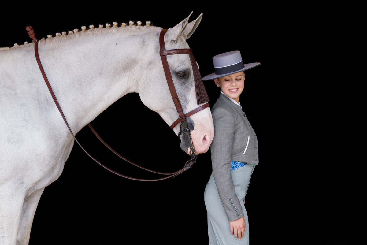 Le due giovani amazzoni, Nicole e Anastasia, insieme a Spooks Gotta Diamond ed Emperador, ricordano quanto l’adrenalinica monta western e l’elegante Doma Vaquera siano la stessa espressione di due differenti modi di vivere il cavallo e la natura. Gli eleganti esemplari arabi sono i soggetti dello scatto con Angelo, storico allevatore veronese, e il suo Jasmine Z.