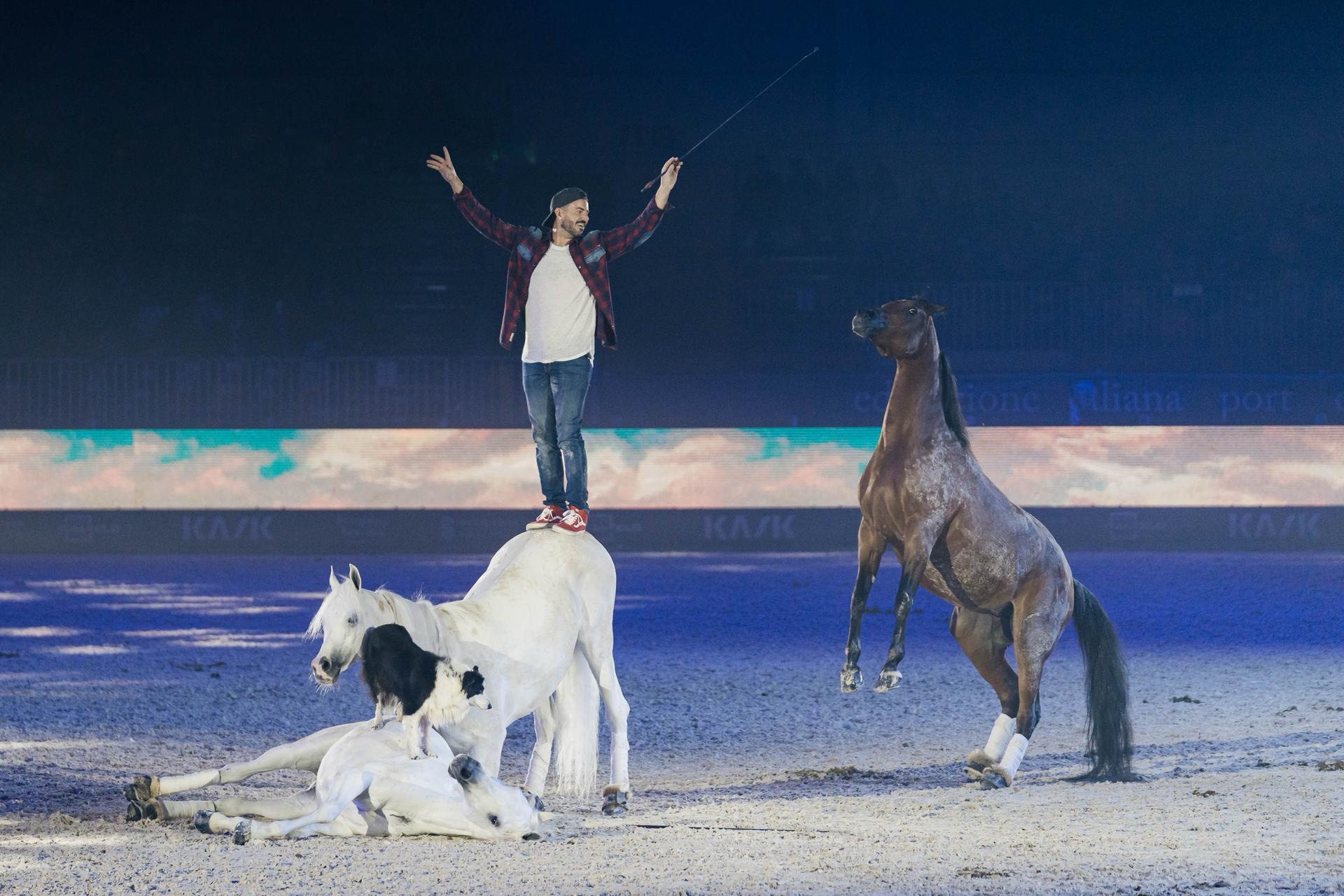 Jean-François Pignon, con i suoi 13 cavalli, porta in scena un numero dal titolo “Libertà”, mentre la coinvolgente performance di Rudj Bellini e Gessica Notaro – insieme ad otto cavalieri con redini in cintura – prende il nome dalla nota filosofia giapponese “Kintsugi” e vuole dimostrare come esaltando le cicatrici si riesca ad amplificare l’autenticità e la bellezza. La giovane belga Mirela Paulus, invece, impersona la gioia più pura, quella che si prova quando si realizza un sogno, grazie alla sua “Amazzone e Violino”, in cui incanterà il pubblico di Veronafiere suonando il violino in sella al suo fedele compagno Diego. La Compagnie Jehol, inoltre, dimostra l’adrenalina tipica del volteggio e la magia di una suggestiva danza tra ballerina e cavallo.