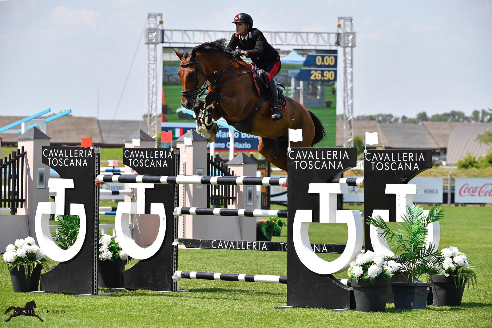 Oggi Filippo Bologni è stato autore di una bellissima ed importante gara nel CSI a 4* di Samorin: dopo la Piazza d’Onore meritata ieri nel GP del circuito slovacco a 2*, oggi il carabiniere scelto ha presentato nel Grand Prix in 2 round senza barrage, su ostacoli ad 1,60 mt (categoria qualificante per Tokyo 2020, Longines Ranking gruppo “B”: Montepremi by Energochemica euro 100.000), il giovane – 9 anni – Sedik Milano Quilazio. Pochissime le esperienze finora maturare dal figlio di Quidam de Revel in categorie di questo livello eppure, nonostante la difficoltà della gara, il giovane Holsteiner ha concluso uno dei soli tre doppi zero realizzati in questo Grand Prix (solo 5 i netti nel base tra i 49 concorrenti), la competizione più importante per questa settimana all’X-Bionic Summer Tour 2019, meritando il terzo gradino del podio (2° round nel tempo di 48’’30).