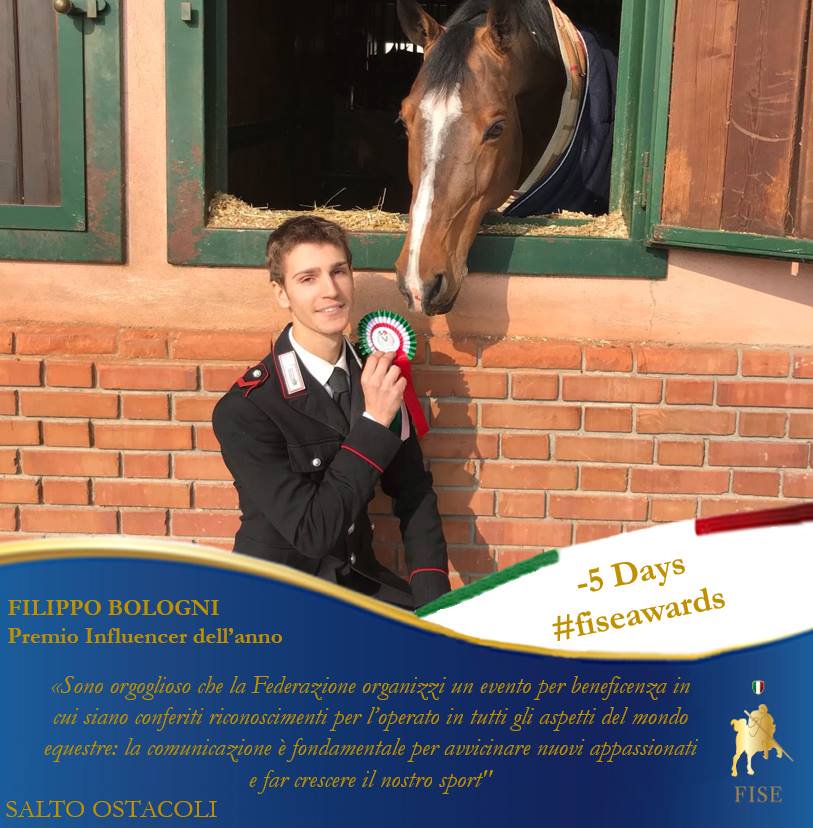 Il Premio Influencer è stato assegnato al carabiniere scelto Filippo Bologni, che alla sua attività di cavaliere agonista aggiunge una grande passione per la musica e una instancabile attività di comunicazione con i suoi numerosi giovanissimi follower sui social.