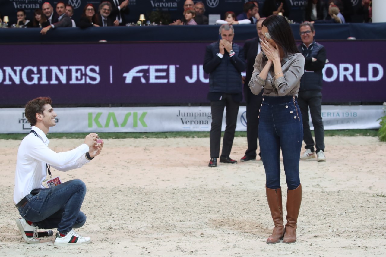 La proposta di matrimonio è arrivata pochi minuti prima dell’inizio del Gran Premio Longines Fei Jumping World Cup Competition, prova dell’unica tappa italiana della Coppa del Mondo di Salto Ostacoli, appuntamento clou di Fieracavalli Verona.