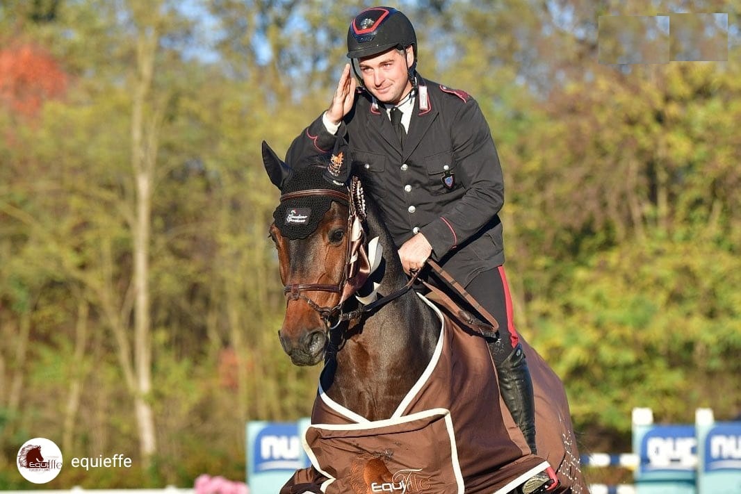 L’Appuntato dell’Arma dei Carabinieri Emanuele Gaudiano è stato oggi nuovamente il protagonista a Gorla Minore, nella gara di apertura del CSI2* che si sta svolgendo nei magnifici impianti del Equieffe Equestrian Centre. Nella categoria di altezza 1.45 mt presentata da Mascheroni Selleria, con formula a tempo ed un Montepremi di 25.500,00 € valida per la Longines Ranking, il cavaliere azzurro è salito sul gradino più alto del podio con Vasco 118, stallone di 8 anni figlio di Vivant con mamma da Chacco – Blue. Il bel baio ha siglato un bel percorso netto nel tempo più veloce di 62”.55. L’assodato binomio, risalgono infatti a gennaio 2020 i primi risultati in competizioni internazionali, si era già fatto notare a luglio 2022 durante il CSI2* di Valkenswaard (NED). (+ informazioni, clicca qui).