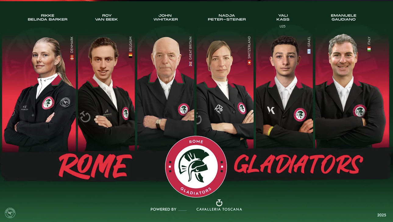 I Rome Gladiators sponsorizzati da Cavalleria Toscana si rinforza con il supporto di John Whitaker per affrontare al meglio la stagione Global Champions League 2025. Con una squadra dalla grande volontà ed uno spirito indistruttibile,  i binomi sono pronti per conquistare, competere e scolpire i loro nomi nella storia. Nel cuore dei Rome Gladiators c’è un mix di esperienza, velocità e brillantezza tattica.