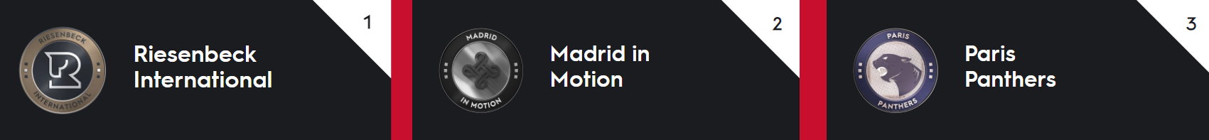 A conclusione della tappa parigina, la classifica provvisoria della Global Champions League riflette il podio del secondo round di ieri, vede infatti in testa i Riesenbeck International con 183 punti, seguiti dai Madrid in Motion a 159, e i Paris Panthers con 149 punti. La League ora si dirige direttamente a Monaco per la nona delle quindici tappe del circuito.