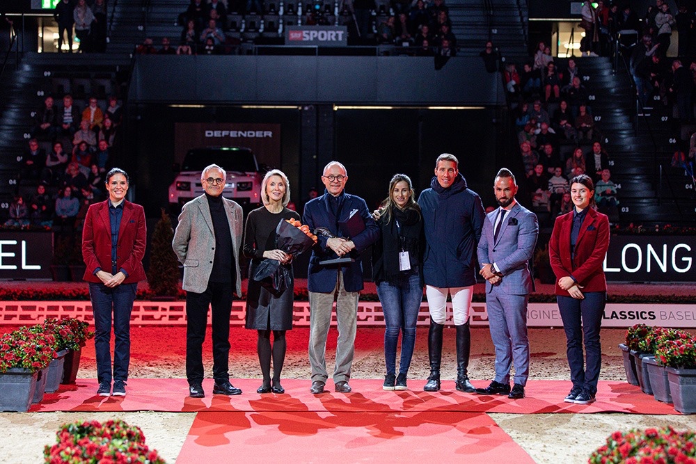 Il premio è un’originale scultura in bronzo raffigurante un cavallo da salto ostacoli, ed è stato consegnato a Georg Kaehny da Yanick Rossier, Longines International Sponsorship & Events Manager, e da Dominique Mégret, presidente del JOC, nell’arena principale del Longines CHI Classics Basel. Georg Kaehny ha anche ricevuto un orologio Longines. Alle sue spalle, al secondo posto il ticinese Luigi Baleri, proprietario di Chaplin, The Sinner e Conner Jei montati da Martin Fuchs per la Svizzera. Terzo posto per Charlotte Soderstrom – Stuteri Arch, proprietaria di H&M Indiana e H&M All In montati da Malin Baryard-Johnsson e da Peder Fredricsson per la Svezia.