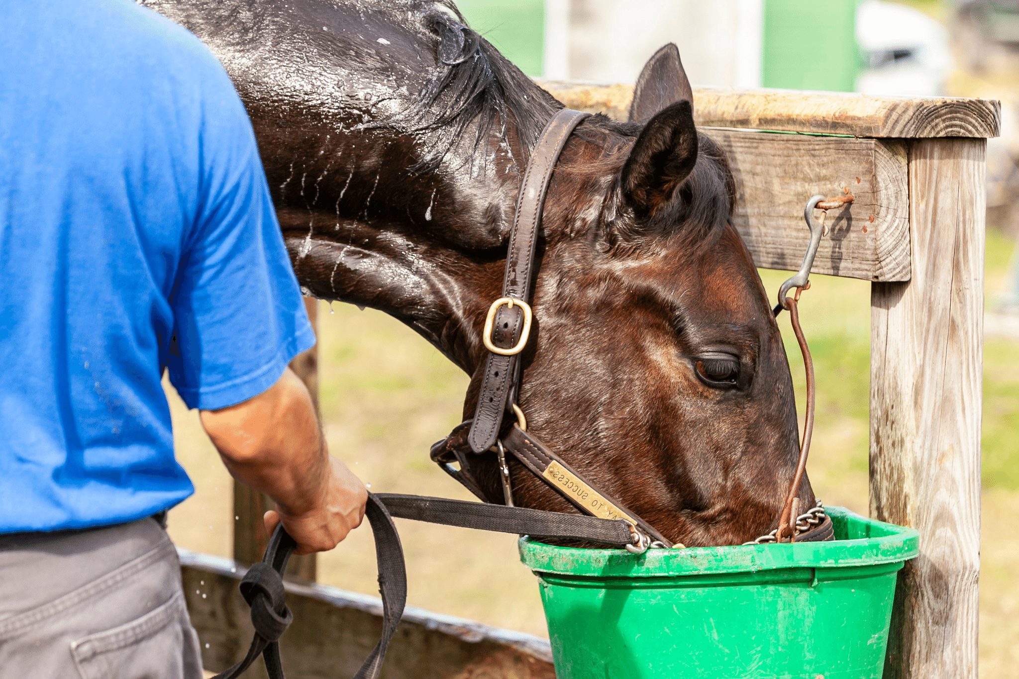 Per i proprietari che aggiungono elettroliti direttamente all’acqua del loro cavallo, Robinson suggerisce di fornire un secondo secchio contenente solo acqua fresca.