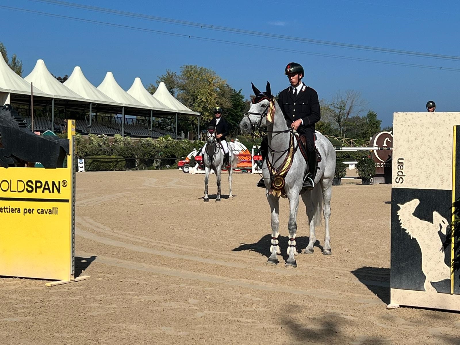 Ancora un successo per il giovane Carabiniere Giacomo Casadei. Nel campo Grand Prix dell’Horses Riviera Resort sono scesi 59 binomi per il Gran Premio del CSI2* (h 1.45 mt con formula a barrage) ed un Montepremi di 28.000,00 €. Giacomo Casadei, accompagnato dal grigio Sella Italiano Ballantine di Villagana (2009, Quidam de Revel x Athlet), dopo aver messo a segno un percorso base senza errori, si è ripetuto in barrage vincendo con 0 penalità in 35”.21.