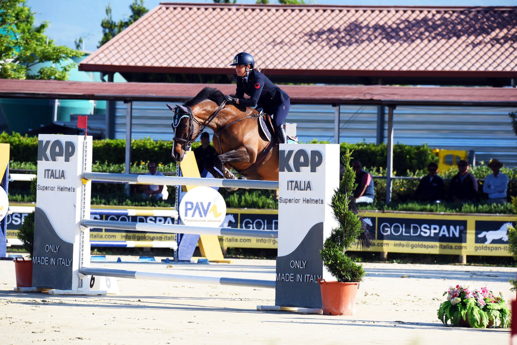 Piazza d’Onore per il 1° Aviere Capo dell’Aeronautica Militare Giulia Martinengo Marquet in sella al castrone baio Holsteiner del 2011 Casper Vd Rode Poelhoeve (Casall x Quinar Z). Anche per loro zero penalità alla fine delle due fasi, ma il tempo di 29”:60 ha mandato questo duo alle spalle della fuoriclasse britannica.